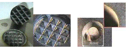 Электрод-инструменты с пирамидальными выступами и обработанные заготовки из наноструктурном титана |